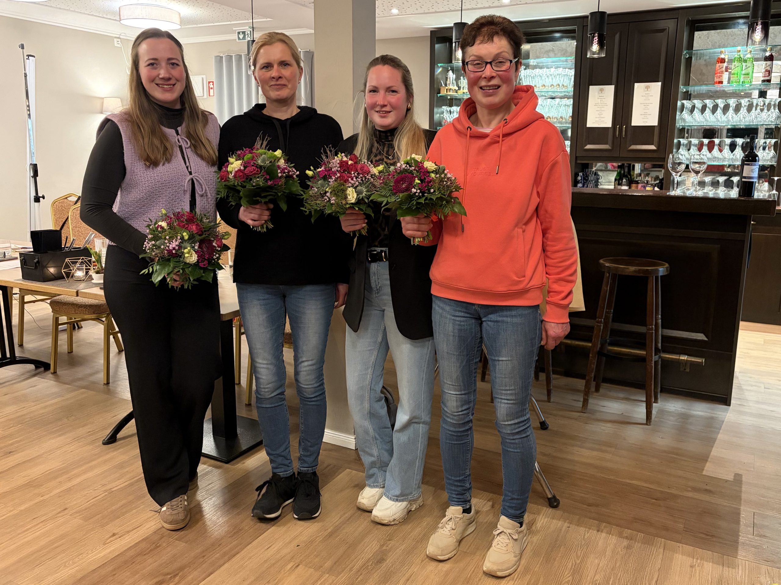 Als kleines Dankeschön erhielten unsere Jubilare einen Wein vom Handelskontor Kraft aus Bruchhausen-Vilsen. Zudem überreichten wir unseren Reitlehrerinnen Blumen für ihren unermüdlichen Einsatz und alle im vergangenen Jahr platzierten Turnierreiter durften sich über einen Gutschein vom Sporthaus Verden freuen.